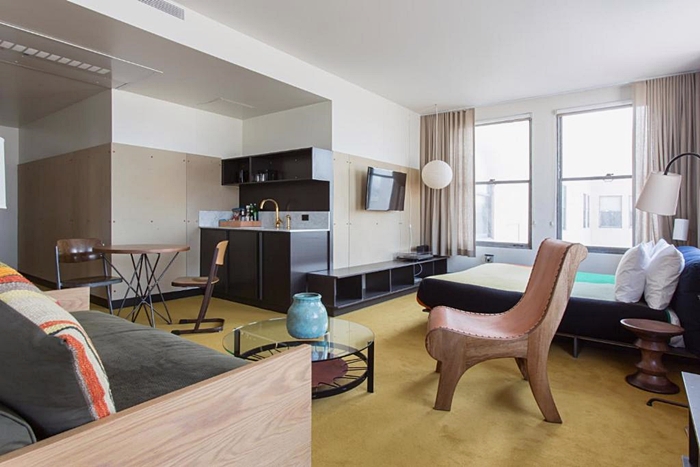 빈티지 가구가 너무나 잘 어울리는 ACE의 모든 객실들은 객실마다 각각의 개성을 담고 있습니다. 테라스 및 간이주방 유무, 객실의 크기, 로프트 및 스위트룸에 이르기까지 다양한 옵션으로 선택이 가능하며 일부 객실에는 어쿠스틱 기타와 이를 연주할 수 있는 턴테이블, 또는 LP가 준비되어 있기도 합니다. 호텔에서 머무는 것 자체로 힐링으로 평가받곤 하는 이유입니다. LA 다운타운 전경이 훤히 내려다보이는 루프탑은 수영장과 바, 라운지가 있어 LA의 젊은 힙스터들이 주말마다 파티를 즐기는 공간이 되기도 합니다. 펫프리(동물반입가능)호텔이며 자전거 무료 대여서비스도 갖추고 있습니다.