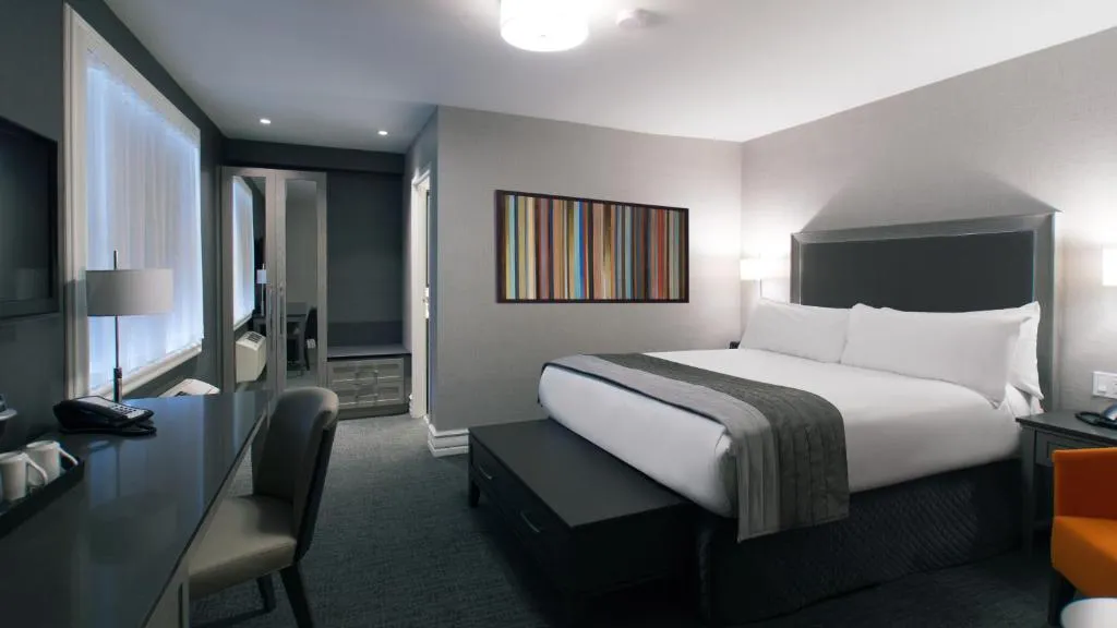 1830년부터 올드 퀘백의 역사를 함께 한 호텔로 수차례의 재건축 및 개조, 보수를 거쳐 현재의 호텔이 탄생했습니다. 주변에는 카페, 식당과 상점이 많아 뚜벅이 여행객들에게 안성맞춤입니다. 2014년부터 16년 사이에 레노베이션을 거친 객실은 모던한 분위기의 부티크 호텔을 연상케 합니다. 총 156개의 객실은 153개의 일반 객실과 3개의 스위트룸으로 나뉘며 2인부터 4인까지 숙박 가능하십니다. 또한 일부 객실은 커넥팅룸으로도 연결할 수 있을뿐더러 실내 수영장, 피트니스 센터와 같은 부대 시설이 갖추어져 있어 가족 단위 여행객들에게도 추천드리는 호텔입니다. 겨울에 캐나다를 여행하는 분들을 위해 한국인에게도 익숙한 바닥 난방 시스템을 구비하고 있습니다.