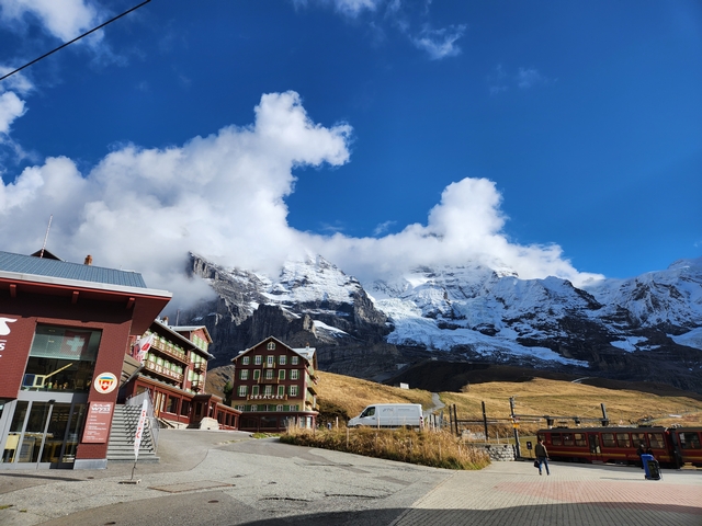 여기는 융프라우에서 그린델발트로 내려오던 중간 역이었어요~ 보이는 저기는 벨베데레 호텔이었던 것 같아요 :)