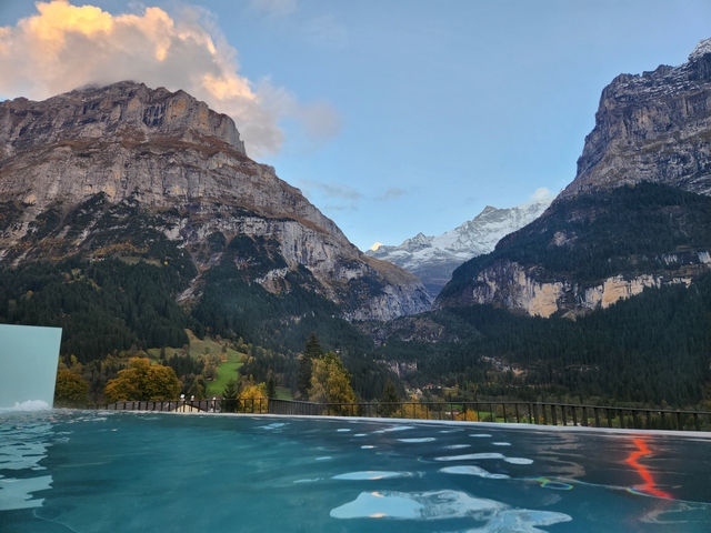 호텔 수영장은 해지기 전에 이용 했는데요, 노을과 아이거북벽은 장관이었습니다!! 수심은...1.2M정도 였던것 같아요 :)