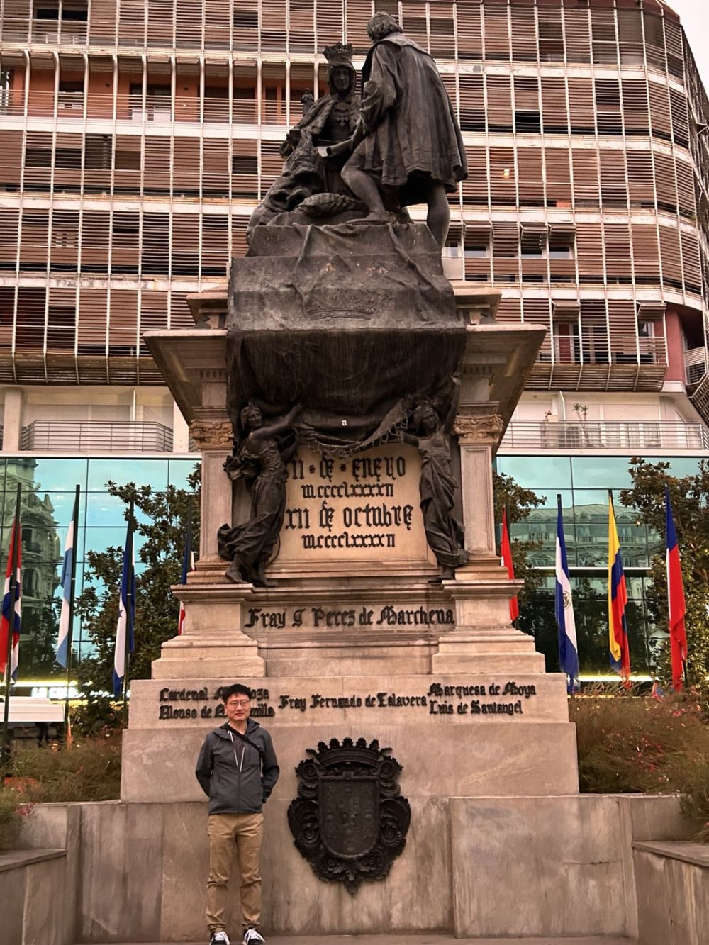 버스타러 가는 길에 이사벨여왕과 콜럼버스 분수대 동상이 있습니다