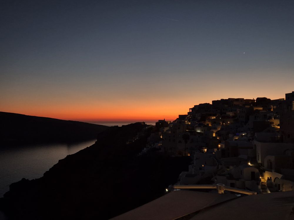 쉬린제에서 산 와인 마시면서 이아마을 선셋을 보고 있으니까 그동안 마음 고생하던게 싹 사라지더라구요.(이야마을에 선셋 뷰포인트도 있는데 저희 부부는 숙소에서 보기로 했어요) 자연재해라 어쩔 수 없는거 알지만.... 그래도 신혼여행인데... 언제 또 산토리니 가볼 수 있을지 기약도 없고....  그런데 산토리니 들어와서 선셋을 보고 있다니!!! 사실 행복하고 황홀하고 그동안 마음 고생하던 것도 생각나서 눈물이 살짝 났는데 남편이 '행복한데 왜 울어~' 하더라구요. 사실 틀린말은 아니지만 행복함과 안도감의 섞여서 그랬다는 건 나중에 말해주었답니다 ㅋㅋㅋㅋ 사진에 이아마을 선셋의 황홀함이 다 담기지 않아서 그게 아쉬워요.