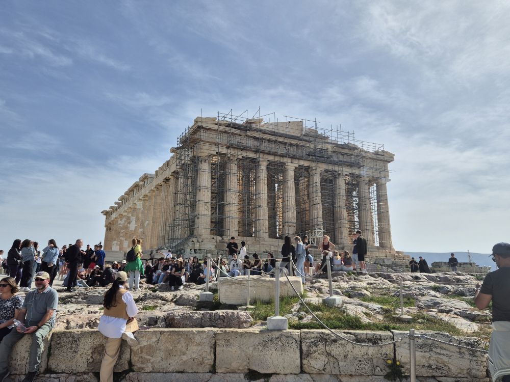 낮에 가서 본 파르테논 신전이에요.  관광객 분들이 많더라구요. 어마어마한 크기에 압도 당햇어요. 그리고 지중해 쪽 가시는 분들은 꼭 선글라스 챙기세요. 전 유럽분들이 왜 선글라스 끼고 다니나 했는데 안끼면 눈 부셔서 못다니겠더라구요.